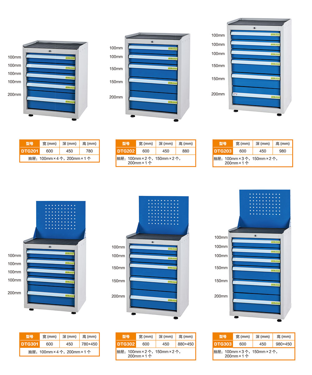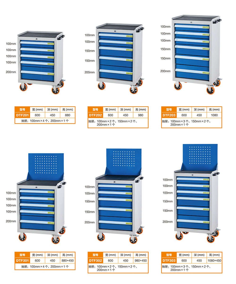 1.輕型工具車柜體寬度都是600MM,深度都是450MM,不同的型號高度有區(qū)別。